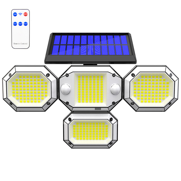 Solar powered four head wall lamp remote control