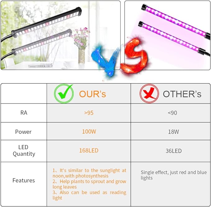 Clamp two tubes 100W white plant light