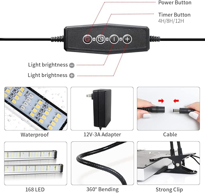 Small clip three tube white light plant lamp