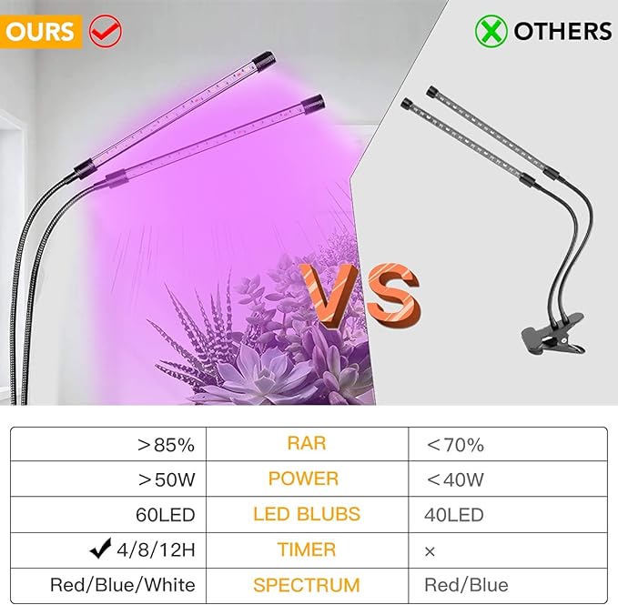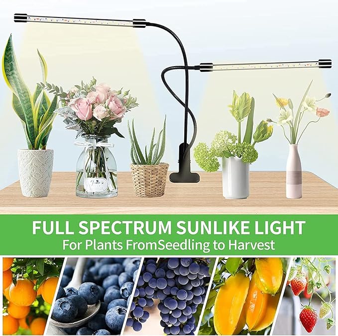 Two white light plant lights with small clips