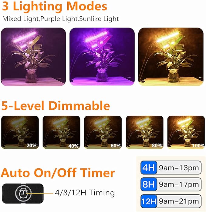 Small clip three tube white light plant lamp