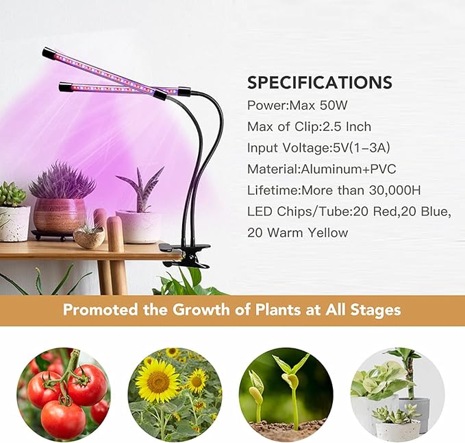 Small clip two tube three color plant light