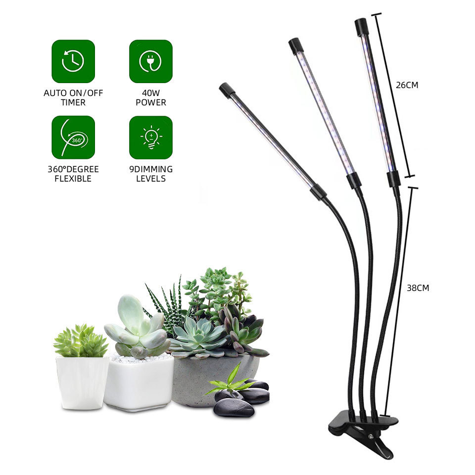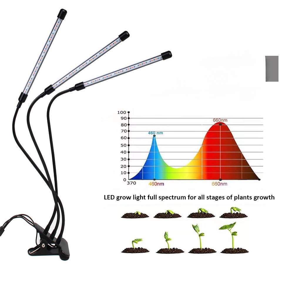 Small clip three tube white light plant lamp