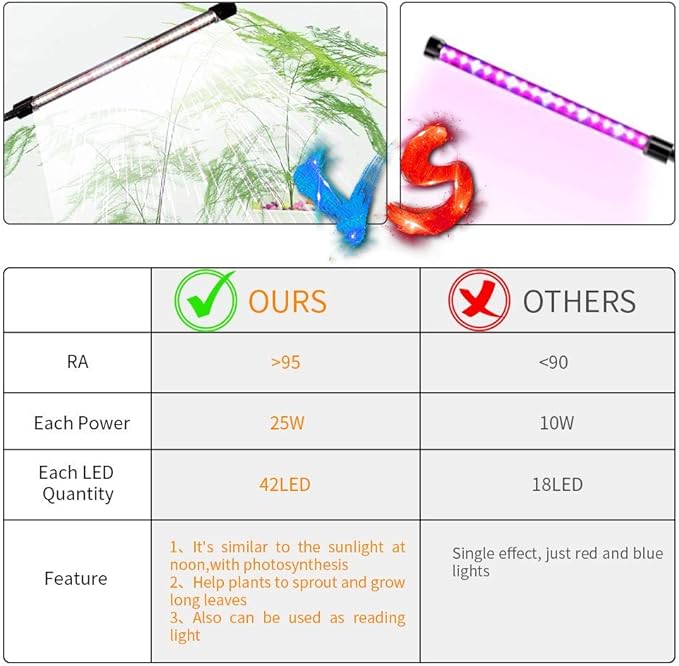 Two white light plant lights with small clips